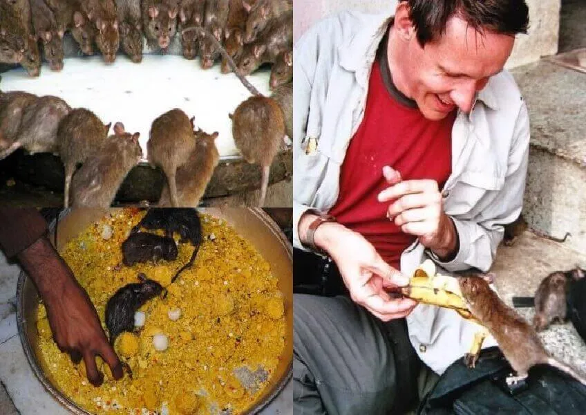 Во время праздника крыс не только кормят, но и поклоняются им. А высшей честью для тех, кто приходит, является употребление крысиных объедков.