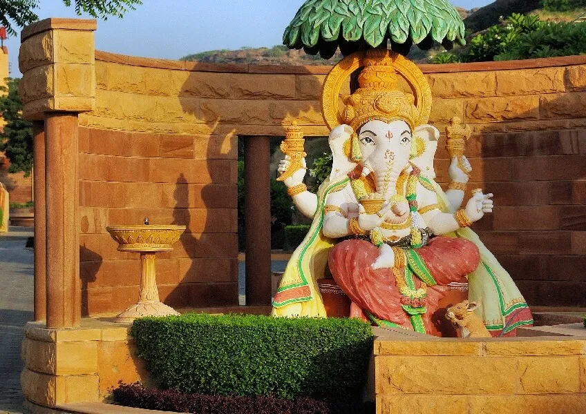 Божество с головой слона, одним бивнем, четырьмя руками и большим животом. По древним индуистским верованиям, он считается сыном Шивы и Парвати. В детстве, это был обычный ребёнок. Но он лишился головы, за одной из версий, от гнева отца, а за другой - от испепеления богом Шани. Ганеша получил голову слона, который символизирует мудрость, благородство и спокойствие. Поэтому, его ещё называют слоном, исполняющим желания.