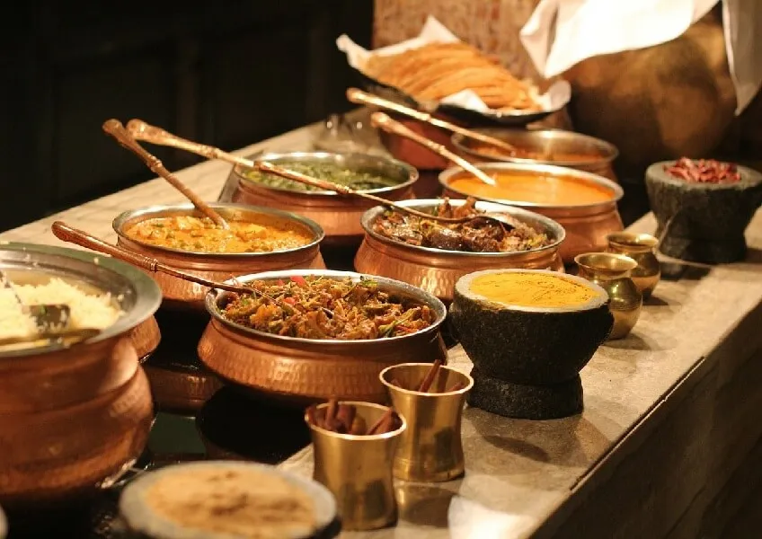 - Визитной карточкой торжественных столов в Индии являются блюда с приправой карри: запеченный ягненок, курица или креветки.