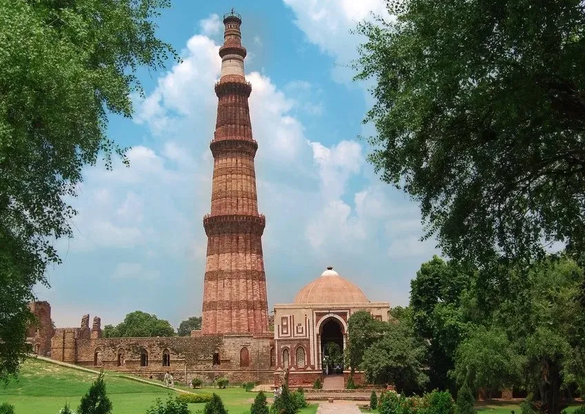 - Минарет Кутуб Минар. Здание выстроено в афганском стиле в 12 веке и является самым высоким сооружением в Индии подобного рода;