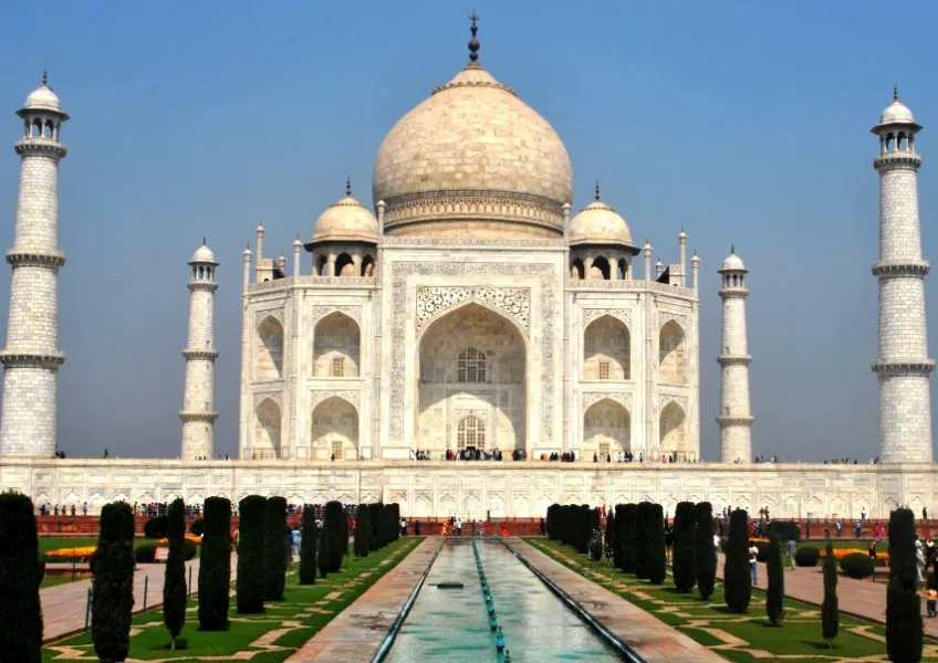 - Агра. Этот город знаменит потому, что в нем располагается известный Тадж Махал. Это известнейшее сооружение выполнено из белого мрамора, а всю его конструкцию украшают четыре минарета. Кроме того, в городе вы найдете старинный форт, хорошо сохранившийся до наших дней. Здесь вас ждут старинные залы, переходы, террасы, Виноградный сад и т.д. Здесь же располагается Усыпальница Итемад-уд-Даулы, выполненная из белого и черного мрамора и считающаяся своеобразным Малым Тадж Махалом. Отели в Агре для бронирования по ссылке.