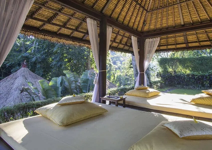 В число услуг отеля входят разнообразные спа-процедуры, которые проводятся в отдельном спа-салоне. Лечебные сеансы проходят в собственном павильоне врачевания, также входящем в инфраструктуру туркомплекса. Каждый из павильонов оборудован мраморными ваннами на открытом воздухе и отдельными балконами, где можно наслаждаться массажем под журчащие звуки речного потока.