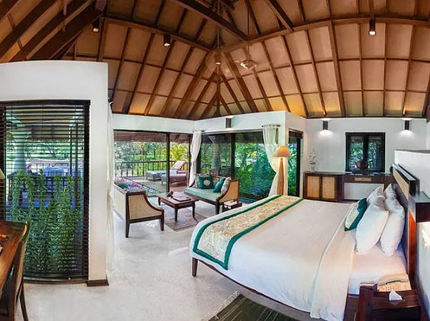 На территории курорта расположены 3 виллы этого вида. Они смогут обеспечить своим гостям роскошь и комфорт. Это уютное и современное пространство с частным бассейном и закрытой территорией. Идеальное место для отдыха и релаксации. Общая площадь дома достигает 1770 кв.футов. Каждая вилла обогащена просторной гардеробной, роскошной спальной зоной. С двух сторон коттедж обрамляют сад и бассейн возле веранды. Комнаты имеют изысканную меблировку. Выполнены в традиционном керальском стиле. Безупречное оборудование, шикарные интерьеры, художественное оформленные зоны обеспечат комфорт и уют.