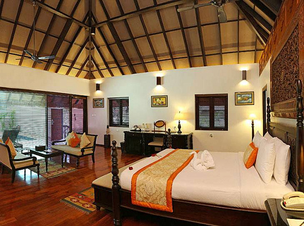 На территории курорта размещены 2 виллы этого типа. Это воплощение элегантности и стиля. Дома представлены единством технологий и модного оформления. Общая площадь домов составляет 2550 кв.футов. Каждая вилла обогащена просторной гардеробной, роскошной спальной зоной. С двух сторон коттедж обрамляют сад и бассейн возле веранды. Комнаты имеют изысканную меблировку. Выполнены в традиционном керальском стиле. Безупречное оборудование, шикарные интерьеры, художественное оформленные зоны обеспечат комфорт и уют.