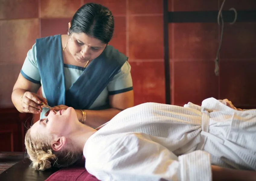 Насьям или насья – это уникальная процедура из арсенала аюрведы, которая помогает бороться с самыми разными заболеваниями и проблемами. Она заключается в сочетании массажа лица, шеи и плеч с введением внутрь носа лечебных масел и настоев трав. Длится один сеанс приблизительно от 40 до 60 минут.