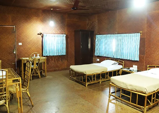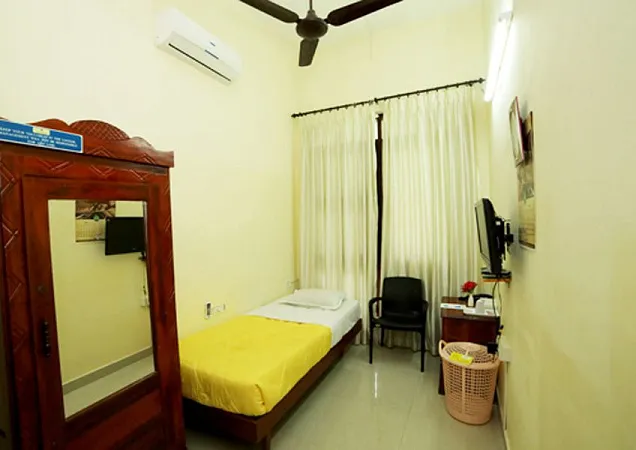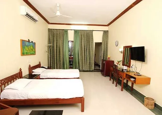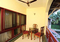 Зачем ехать в Индию, если не остановиться в аутентичной хижине, не любоваться местной природой и не испытаться на себе целительную силу аюрведы? River View Cottage – очаровательный домик, выстроенный из натуральных материалов. Наверняка вам еще не приходилось жить в коттедже с крышей из листьев пальмы. Внутри хижины вас ждет уютная комната с двумя односпальными кроватями, кондиционером, телевизором, шкафом и письменным столом. Из комнаты есть выход на общий балкон, откуда открывается полный умиротворения вид на воду и тропическую растительность.