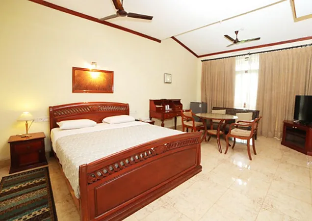 Современный номер Deluxe Type 2 создан для путешественников, которые хотели бы отдыхать и проходить лечение в комфортных условиях. Номер кондиционирован, а значит, вы не будете страдать от жары. Вся мебель в номере современная: в нем есть двуспальная кровать, шкаф для одежды с большим зеркалом, мягкая мебель и большой плоскоэкранный телевизор. С собственного балкона вы сможете наслаждаться видами водной глади Керальских заводей, от которых веет спокойствием и прохладой – идеально для расслабления и медитации наедине с природой.