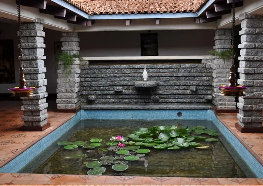 Здания на всей территории отеля выполнены в южноиндийском стиле из экологически чистых и натуральных материалов, внутренний интерьер комнат сочетает изысканные древние традиции и функциональную современность. Для всех категорий номеров предоставляется доступ к саду на территории отеля, где можно позагорать, заняться йогой, медитаций или просто отдохнуть на свежем воздухе.