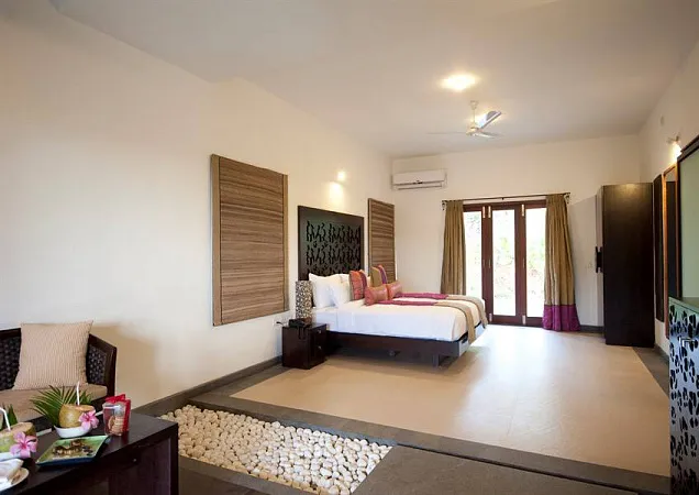 Истинные приверженцы аюрведического образа жизни называют курорт идеальным местом для отдыха, лечения, медитаций и созерцания прекрасного. А еще особенным островком для открытия непостижимых ранее тайн своей души. Номерной фонд тоже отличается от привычного размещения в стандартных отелях. Вы можете выбрать два варианта: