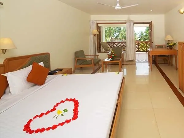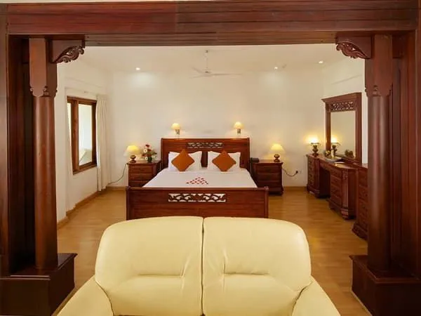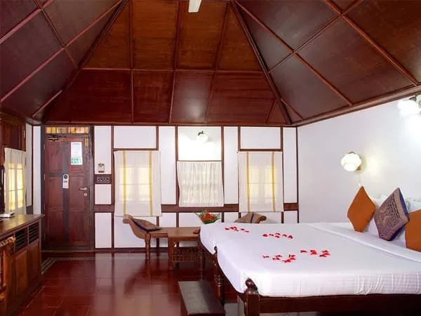 Это одноэтажные дома, построенные в традиционном Керальском стиле. В каждом дома по семь комнат. В номерах просторная спальная зона с большой кроватью, эргономичная мебель из натуральных материалов. Уровень комфорта повышают телевизор и кондиционер. В ванной комнате есть душевая кабина, туалет и туалетные принадлежности.