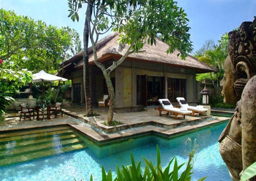 Интерьеры номеров отеля не совсем типичны для Бали. В них преобладают французские традиции и английская элегантность. Все полы покрыты натуральным деревом, да и качество других материалов, использованных для создания атмосферы роскоши и стиля, находится на высоком уровне. В ванной, отделанной мрамором, вы найдете не только халаты, но и французскую профессиональную косметику.