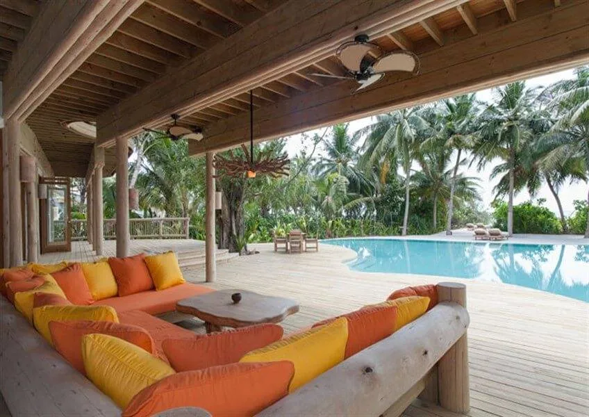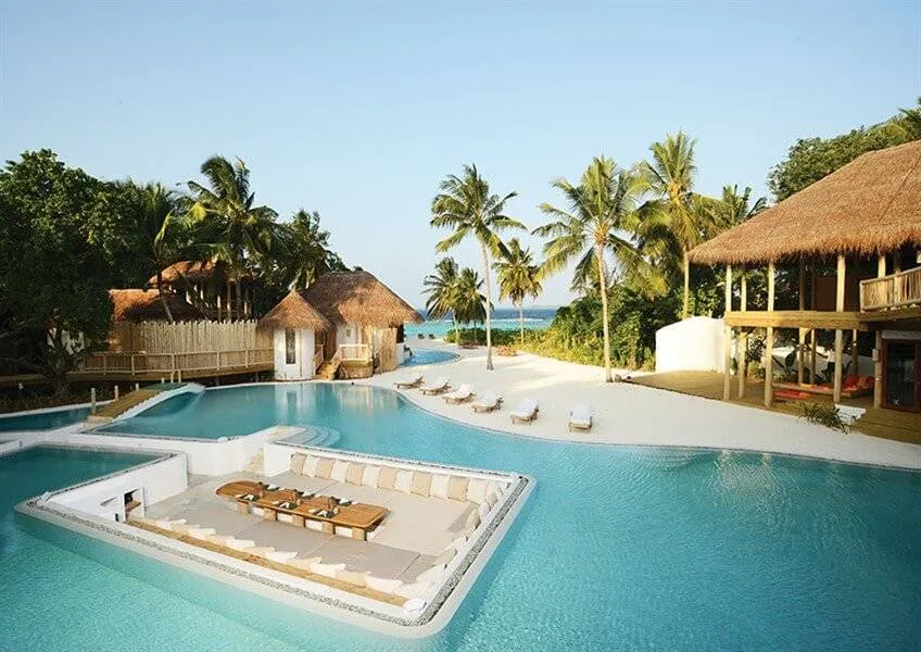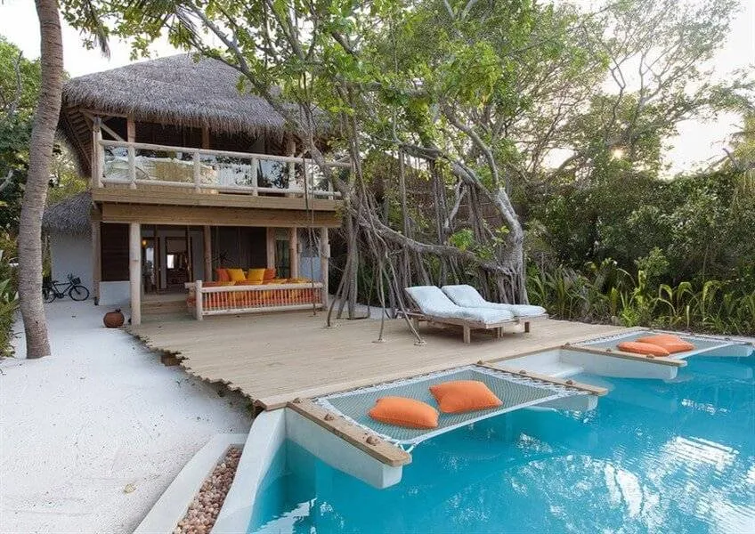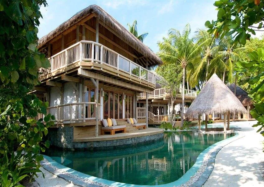 Как только вы прилетите на остров, вас попросят снять обувь: по территории отеля принято ходить пешком. Сам он наполнен зеленью и напоминает необитаемый остров Робинзона Круза, только без опасных животных и ядовитых растений.