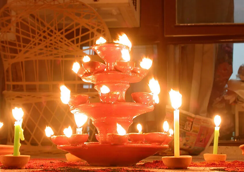 На время фестиваля все здания городов и деревень украшены фонарями, свечами и прочими источниками света. Везде царит праздничная атмосфера и веселье. В эти дни Индия буквально светится миллионами огоньков.